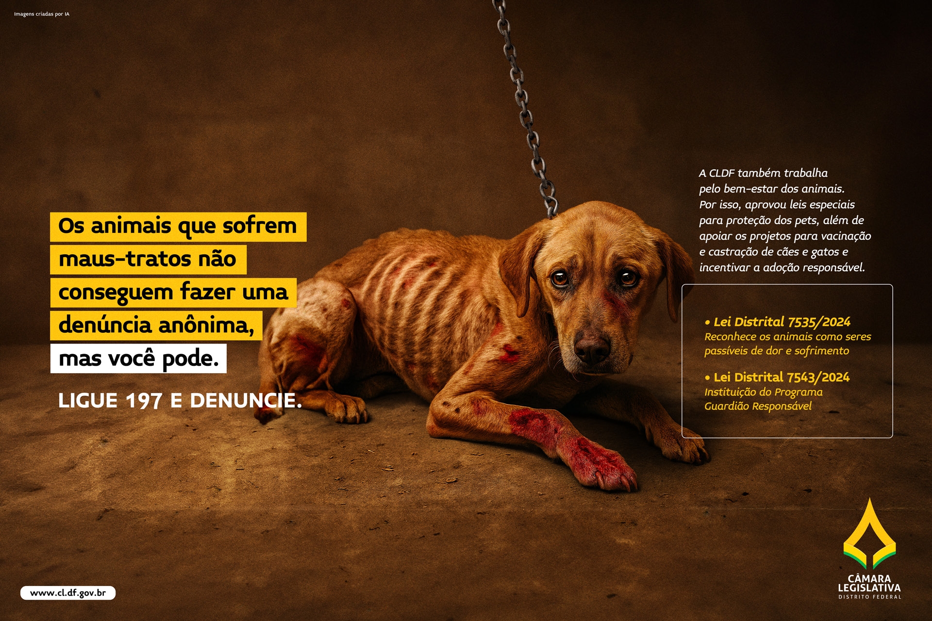 A Câmara Legislativa do Distrito Federal (CLDF) lançou a campanha “Pets 2025”, criada pela agência Calia, com o objetivo de ampliar a conscientização sobre os direitos dos animais e combater os altos índices de maus-tratos registrados nos últimos anos no DF. Embora mais da metade da população da cidade possua animais de estimação, a violência contra pets segue em patamares alarmantes, revelando a urgência de mobilizar a sociedade para práticas de guarda responsável e incentivo à denúncia. Só em 2025, o Distrito Federal registrou 252 ocorrências e 1361 denúncias anônimas.