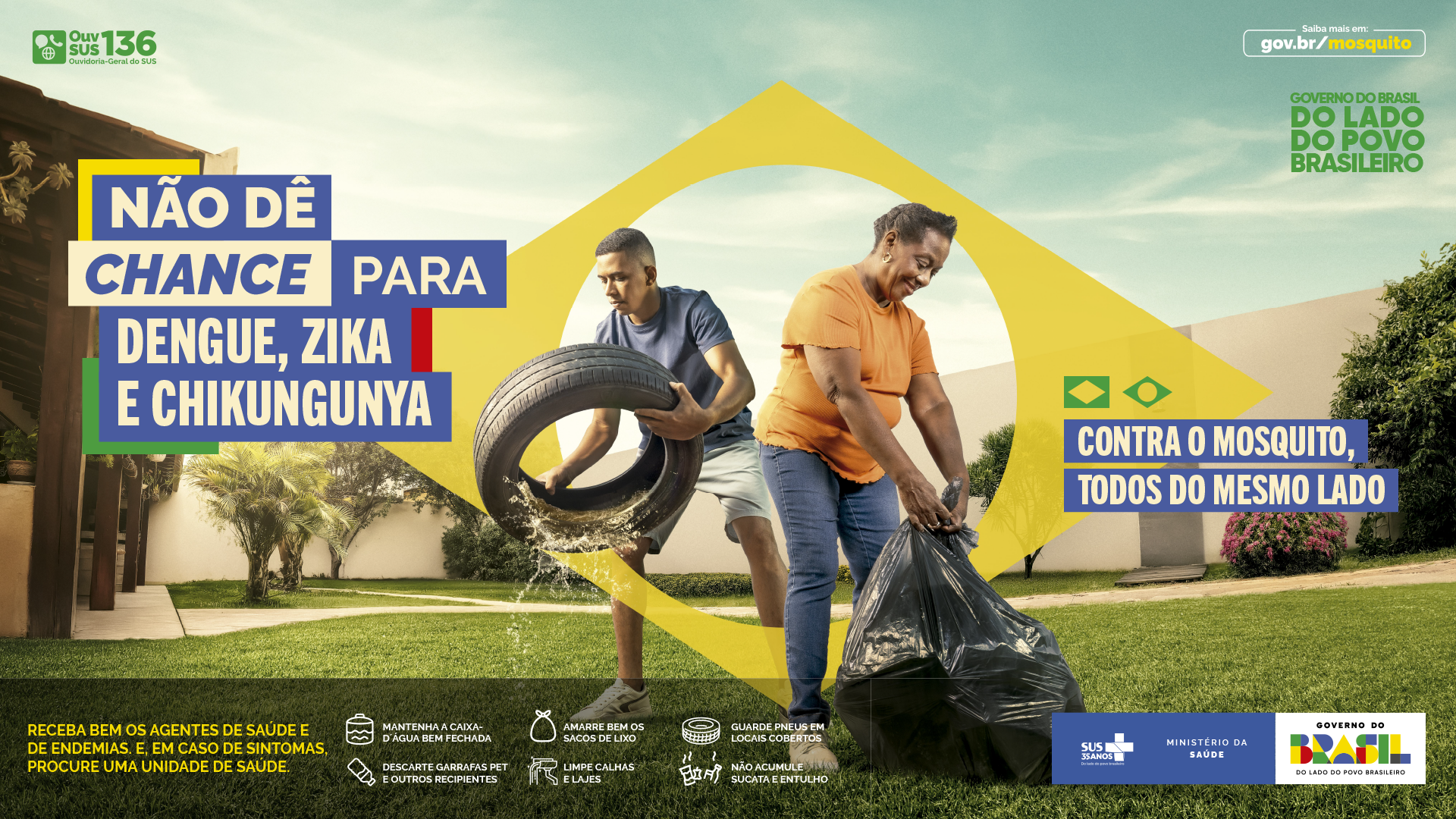 Com foco na mobilização social, a campanha ressalta que pequenas atitudes como manter casas, jardins e quintais limpos e sem entulhos evitam o acúmulo de água, impedem a proliferação do mosquito e podem salvar vidas. O aumento no número de casos, na maior parte do país, é esperado entre outubro e maio, período sazonal marcado por altas temperaturas e elevada umidade decorrente das chuvas, condições que favorecem a proliferação do mosquito e a transmissão das doenças. Essa sazonalidade pode variar de acordo com a região geográfica.